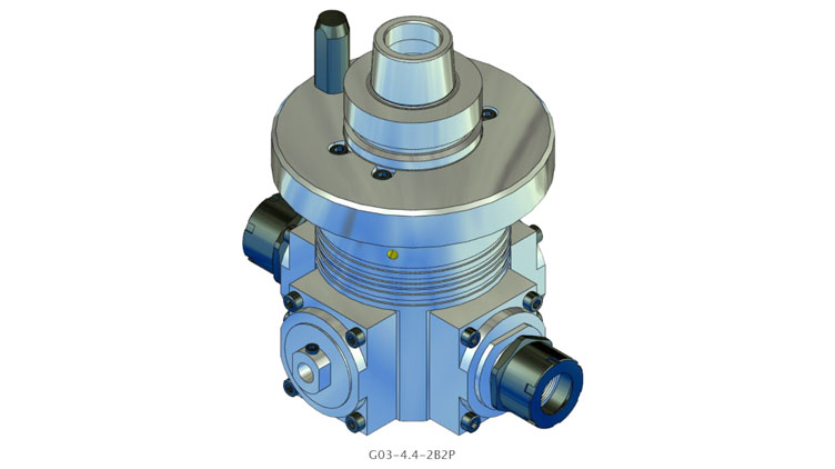 G03 系列角头最多配备 4 个加工主轴。所有刀具座的主轴转动方向始终与驱动转动方向相同。驱动速度以 1:1,55 的比率传输到工具容座。间歇运转的主轴最高转速为18,000 1/min。