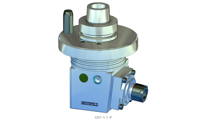 G07-1.1-P 系列的角铣刀头为您提供了制造角铣刀头的选项,其主轴位置固定,从 10° 向上到 10° 向下。角位置不能随后改变。