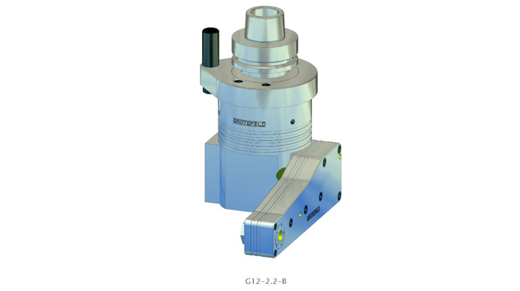 G12 系列的角头特别适用于加工零件孔。他们有一个非常短的连续加工主轴,带有两个刀架。这意味着两个刀架之一的主轴旋转方向与驱动旋转方向相同,另一个刀架的主轴旋转方向与驱动方向相反。驱动速度以 1:1.93 的比率传输到刀架。连续运行时最高主轴转速可达 10,000 rpm。