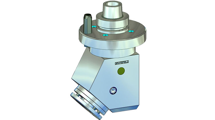 W17 系列角头配备加工主轴,可在 0°(水平)至最大 90°(垂直)范围内以固定角度可变布置。生成的固定角度之后无法更改。主轴的旋转方向与驱动器的旋转方向相反。驱动速度以 1:1 的比例传递到刀架。对于 W17-1.2-SB 型,根据上述信息,主轴可以与锯和钻架同时安装。间歇运行时主轴最高转速可达 18,000 rpm。
